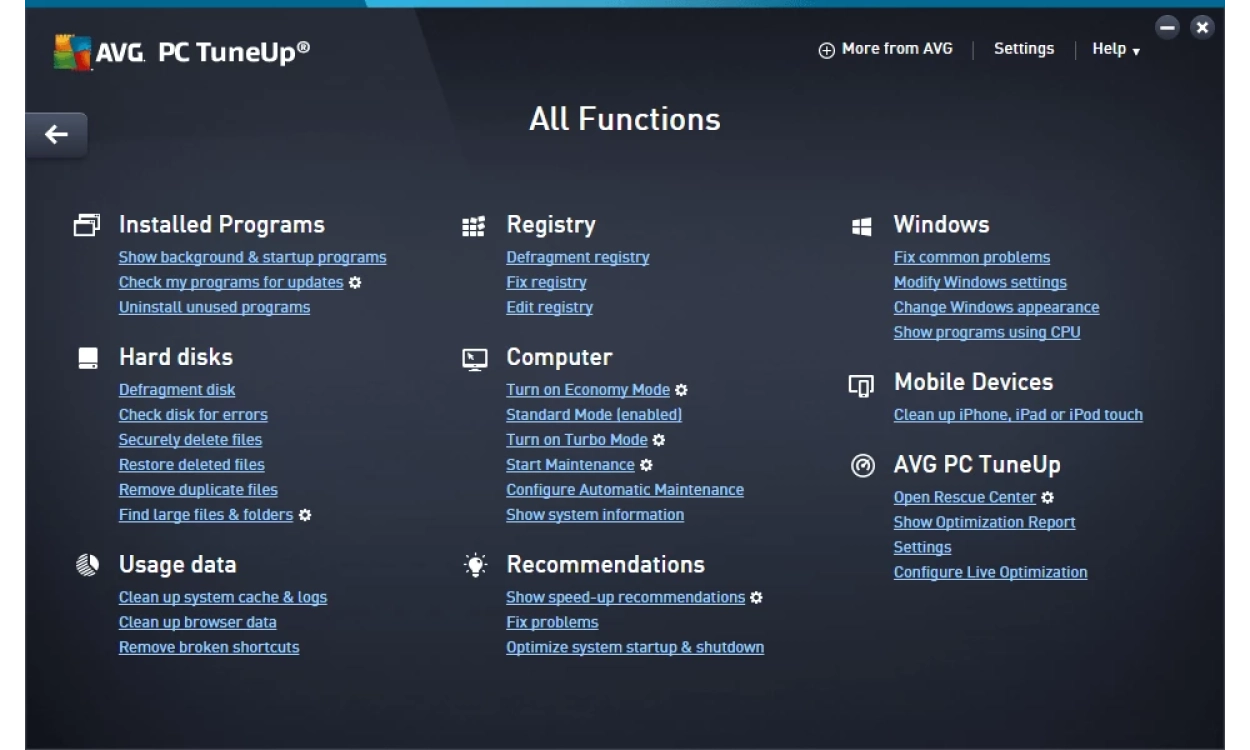 Funzionalità familiari, ma anche migliorate, di AVG PC TuneUp