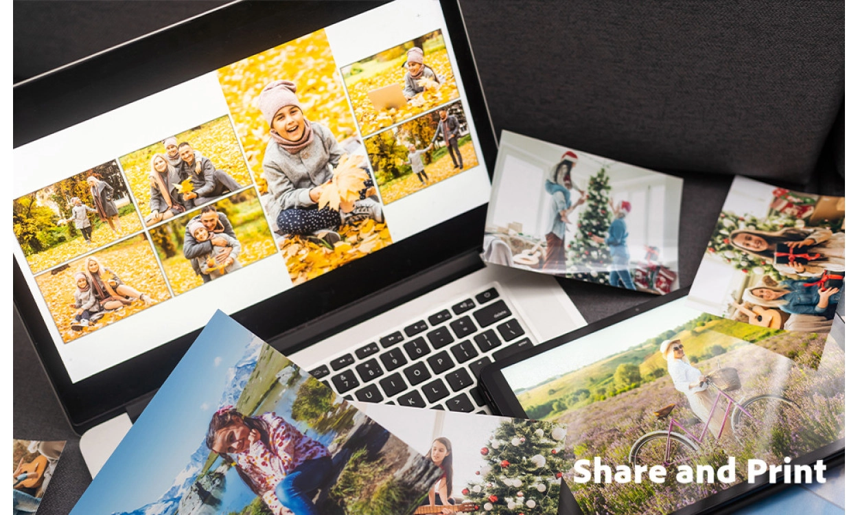 - Crea reel fotografici, reel di highlights, collage e slideshow, e condividi le tue creazioni senza problemi sui social media o tramite codici QR.