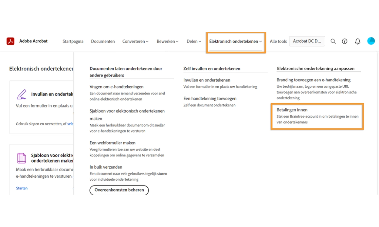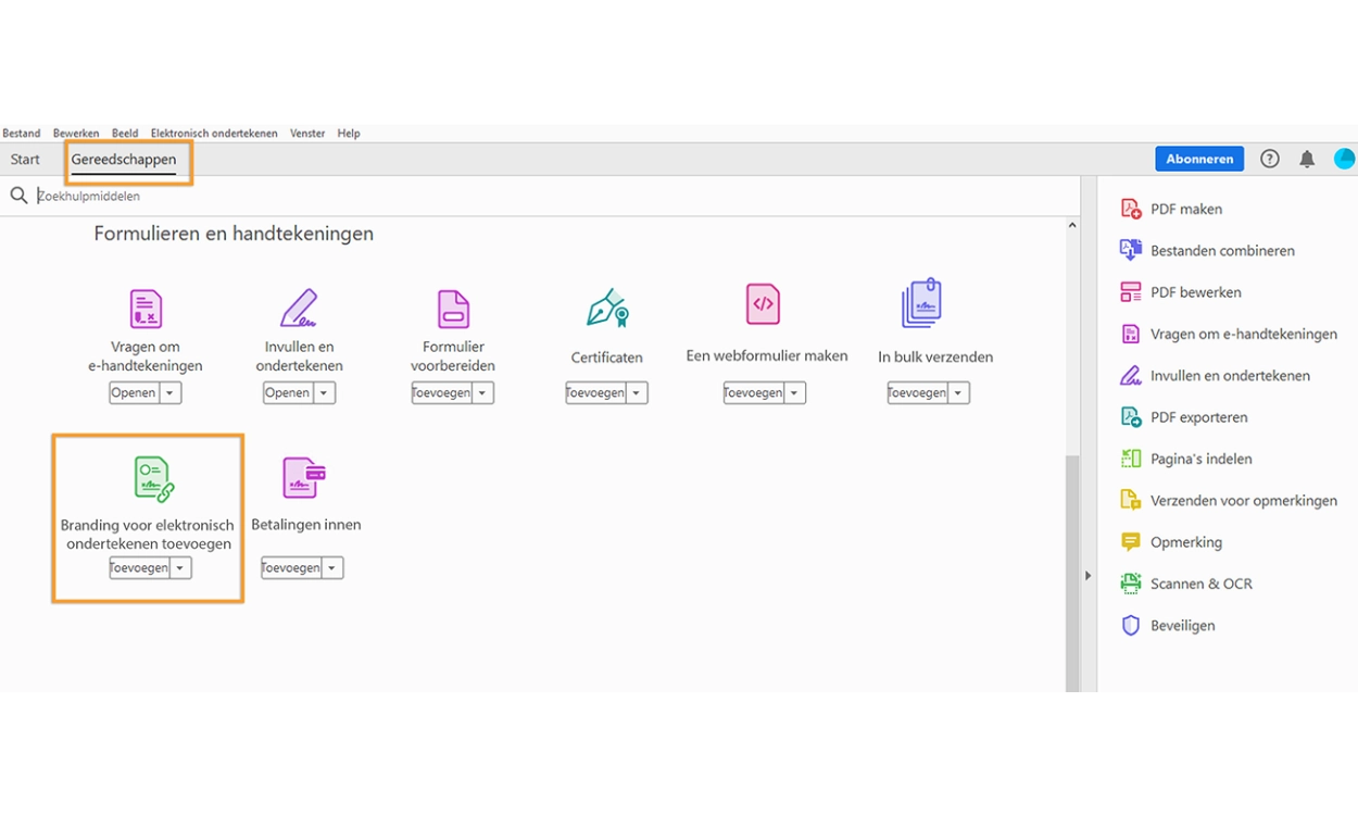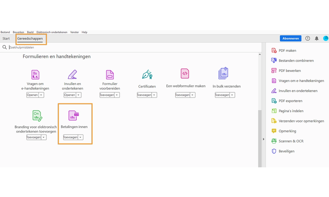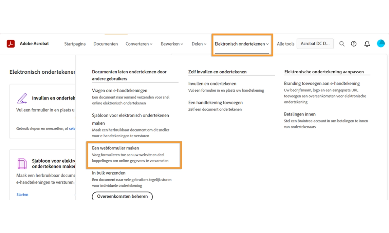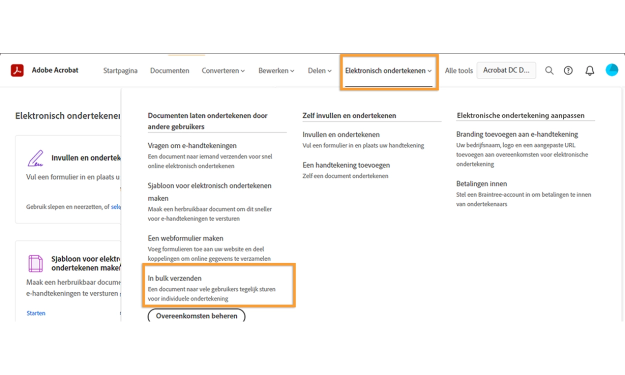De bovenstaande nieuwe functionaliteiten zijn zowel beschikbaar voor de desktop-app van Acrobat als de online services van Acrobat.
