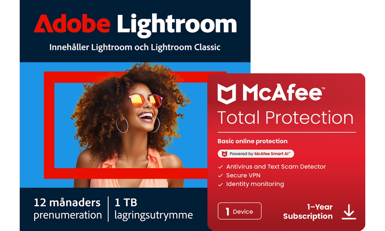 Adobe Lightroom CC | 1 användare | 1 år | 1 TB molnlagring + McAfee Total Protection | 1 enhet